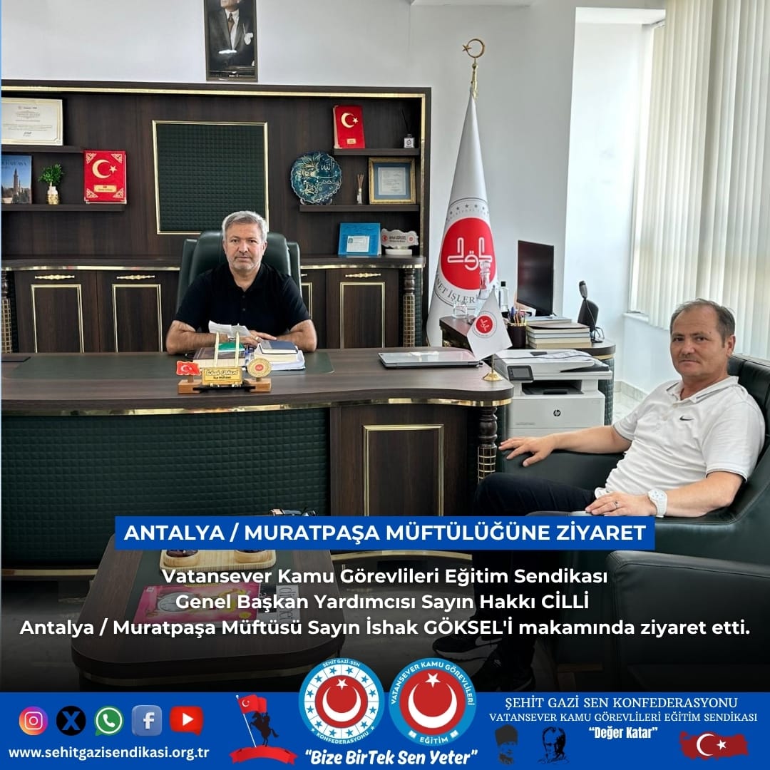 Antalya Muratpaşa İlçe Müftümüze nazik misafirperverliği ve samimi ev sahipliği için gönülden teşekkür ederiz.