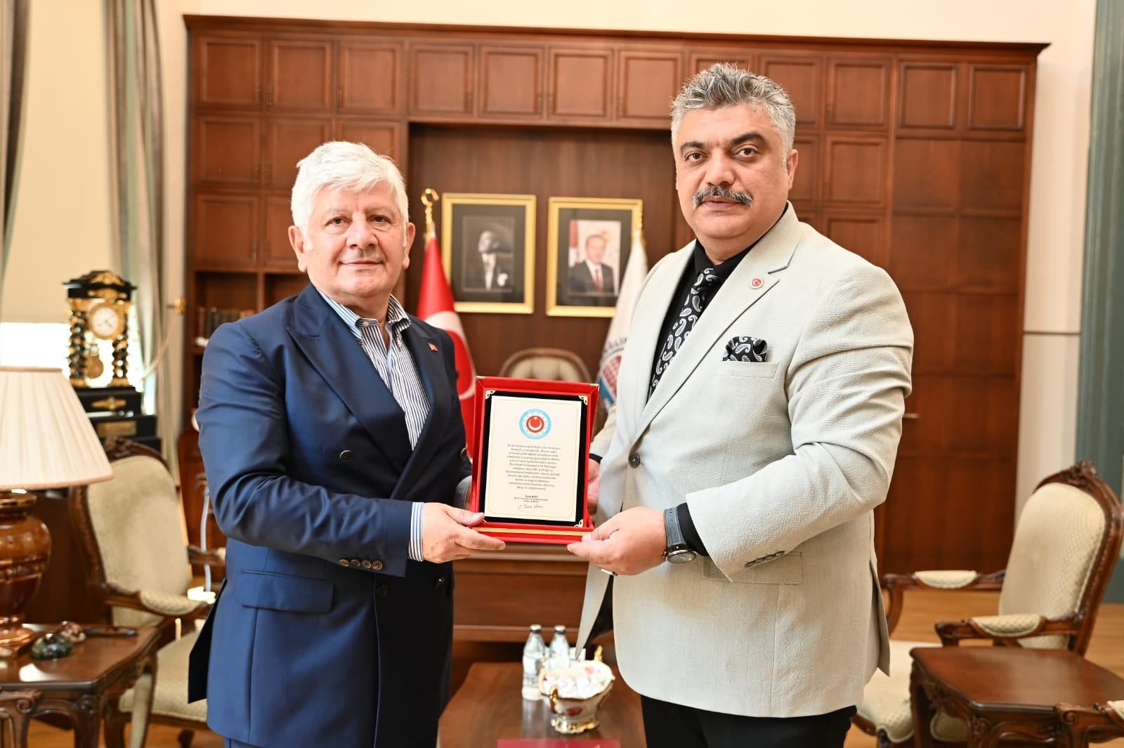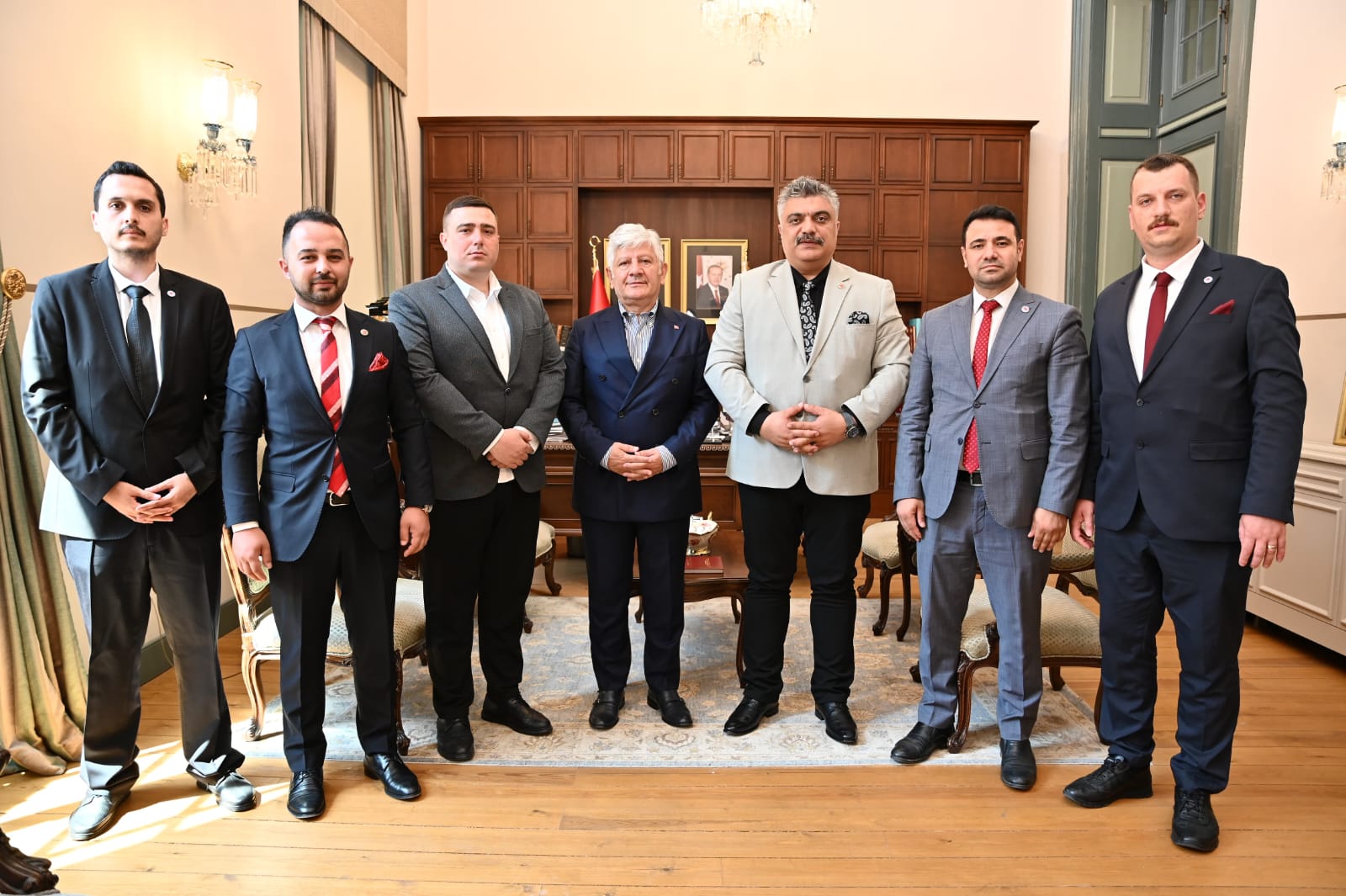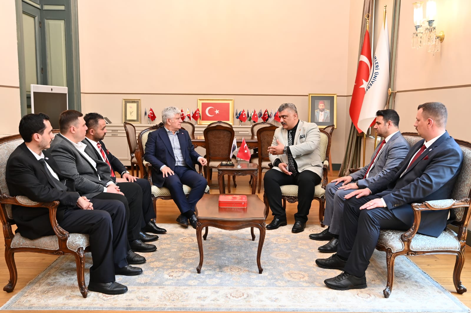 Şehit Gazi Sen Konfederasyonu Genel Başkanı Tuna AVCI ve beraberindeki heyet ile Vatansever Kamu Görevlileri Eğitim Sendikası Genel Başkan Yardımcısı Berkan ÇALIŞKAN, Sağlık Bilimleri Üniversitesi Rektörü Sayın Prof. Dr. Kemalettin AYDIN'I makamında ziyaret etti.