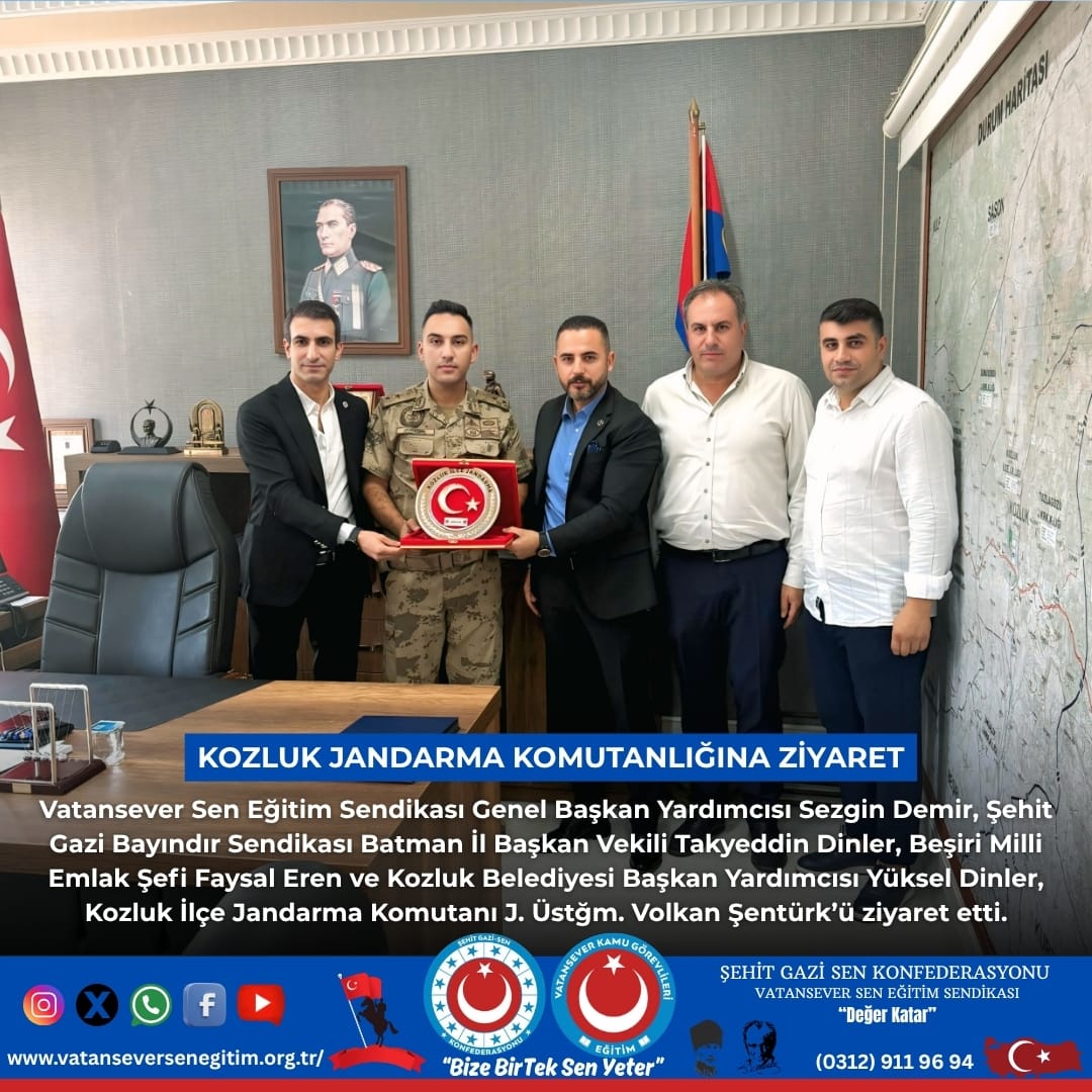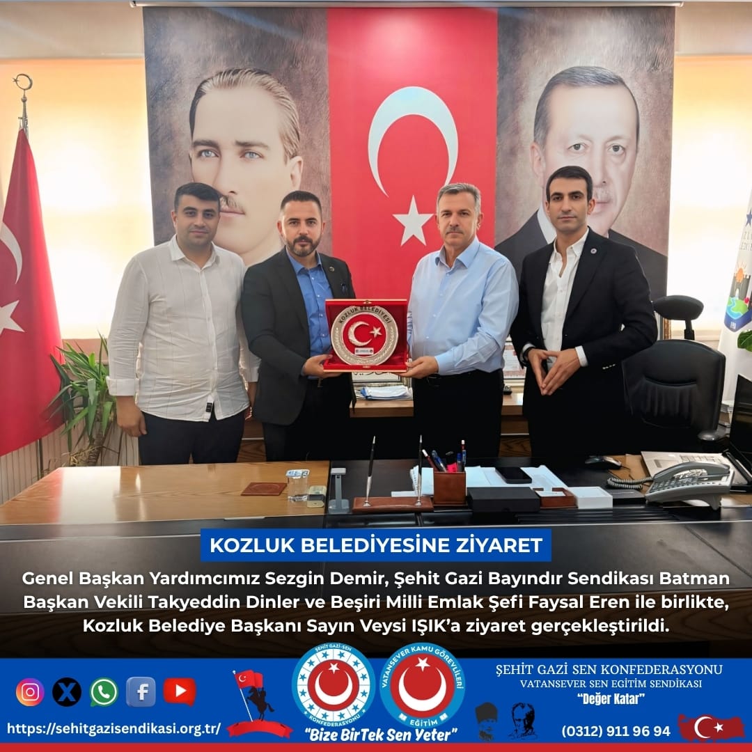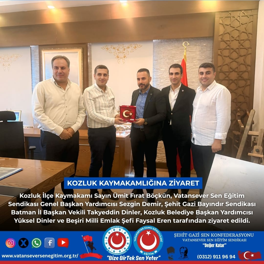 Vatansever Kamu Görevlileri Eğitim Sendikası Genel Başkan Yardımcısı Sezgin Demir, Şehit Gazi-Sen Konfederasyonu heyetiyle birlikte Batman’ın Kozluk ilçesinde bir dizi ziyaret gerçekleştirdi.